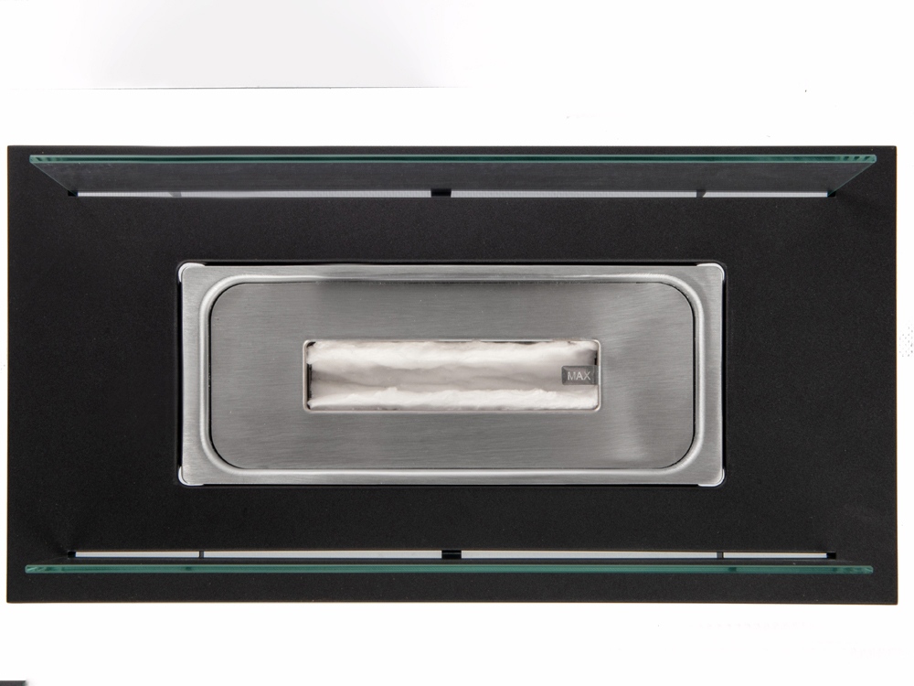 Стильный, минималистичный, он идеально впишется в облик любого пространства, а нанесение тампопечатью, деколью или трафаретной печатью превратит стеклянные стенки в идеальный пылающий фон для лого — кстати, можно обыграть прямоугольную форму биокамина, создавая дизайн в виде интересной рамки. Кроме того, логотипом можно украсить и металлическое основание, добавив гравировку.