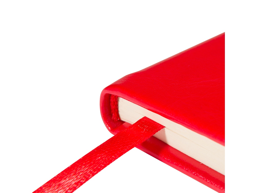 Твердая обложка с приятной фактурой, углами закругленной формы, книжный переплет и ляссе в цвет обложки наделяют блокнот практичностью.