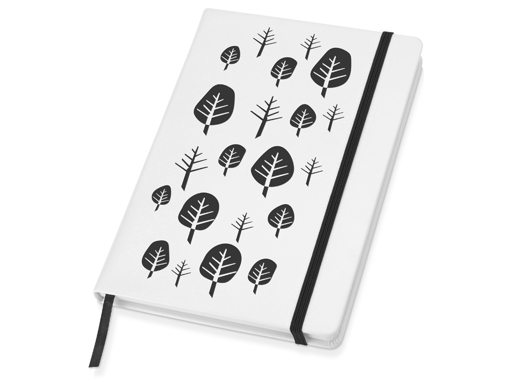 Белый линованный блокнот формата А5 с закладкой и эластичной застежкой идеально подойдет для записи секретов. Еще одна тайна спрятана в его обложке – под ее верхним слоем белого цвета скрыт контрастный фон, который становится виден при тиснении.