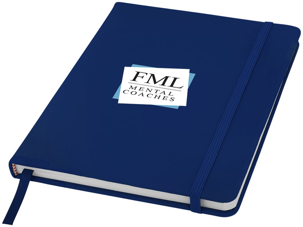 Блокнот А5 с цветной резинкой и закладкой. 96 листов белой бумаги (60 г/м2). FSC certified paper, PU Plastic. FSC Mix Credit P7.1 CU-COC-877277.