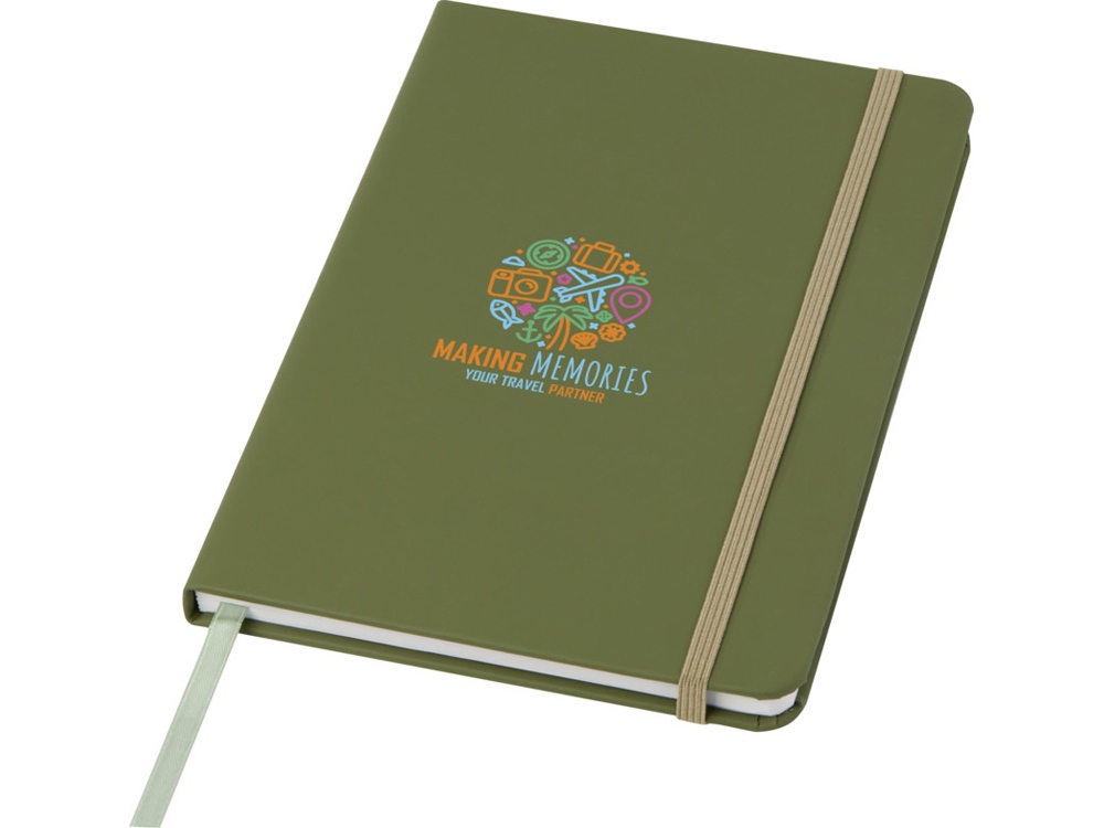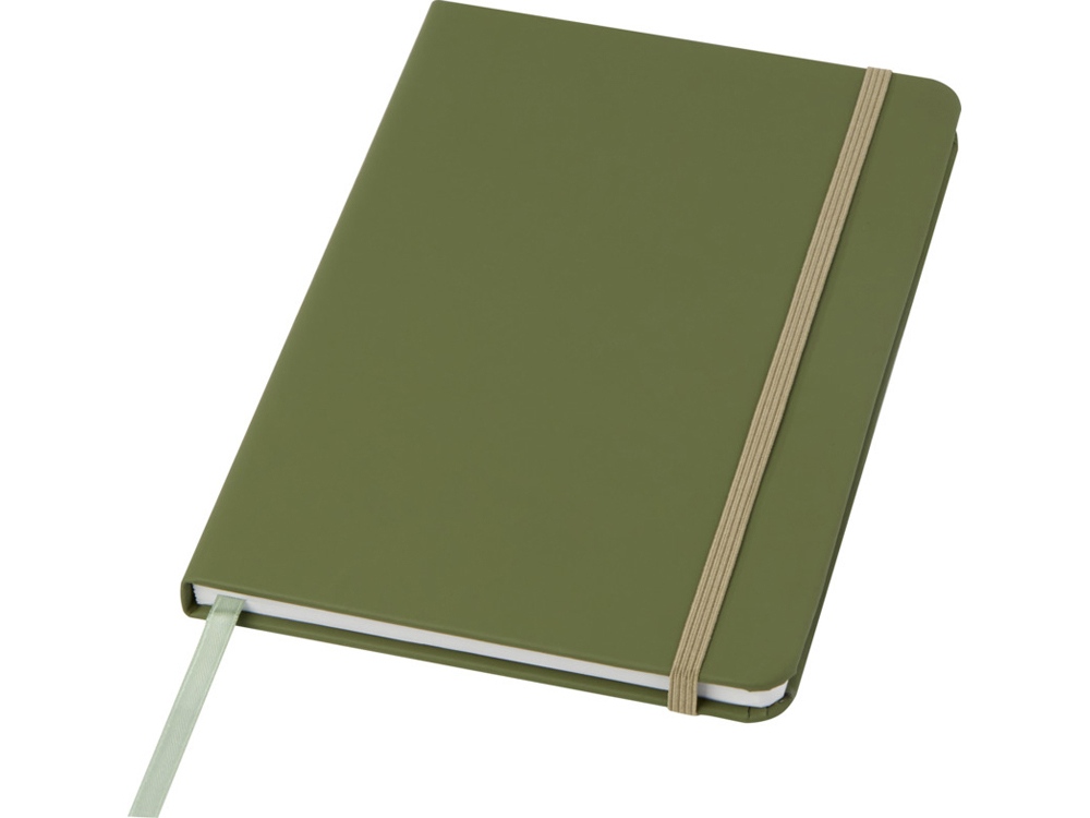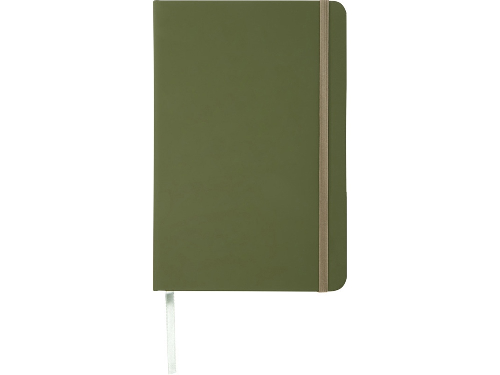 Блокнот А5 с цветной резинкой и закладкой. 96 листов белой бумаги (60 г/м2). FSC certified paper, PU Plastic. FSC Mix Credit P7.1 CU-COC-877277.