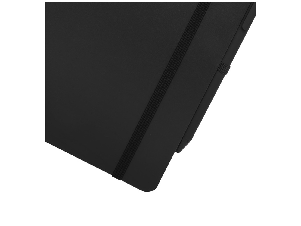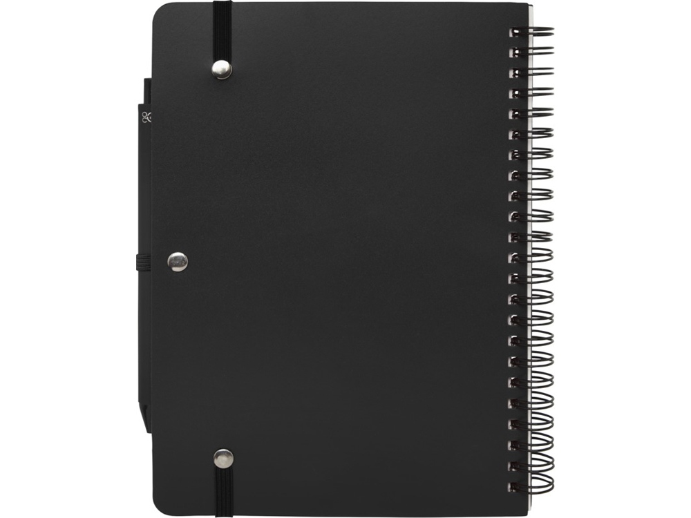 Блокнот Thalaasa формата А6 в твердой обложке изготовлен из переработанного океанического пластика и содержит 80 линованных листов кремовой бумаги плотностью 70 г/м². Блокнот имеет закругленные углы, эластичную застежку и петлю для ручки. Шариковая ручка с черными чернилами также изготовлена из переработанного океанического пластика. Длина непрерывной линии: 1000 метров. Размер пера: 1,0 мм.