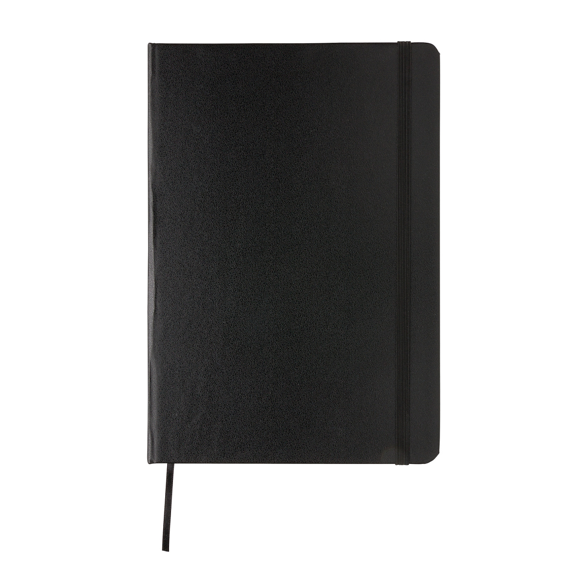 Блокнот Basic в твердой обложке формата А5 на резинке с ляссе. 72 страницы, нелинованная бумага кремового цвета, плотностью 70 г/м2. Идеально подходит для рисунков и записей. Длина 1,3 см., ширина 14,5 см., высота 21 см., диаметр 0 см.