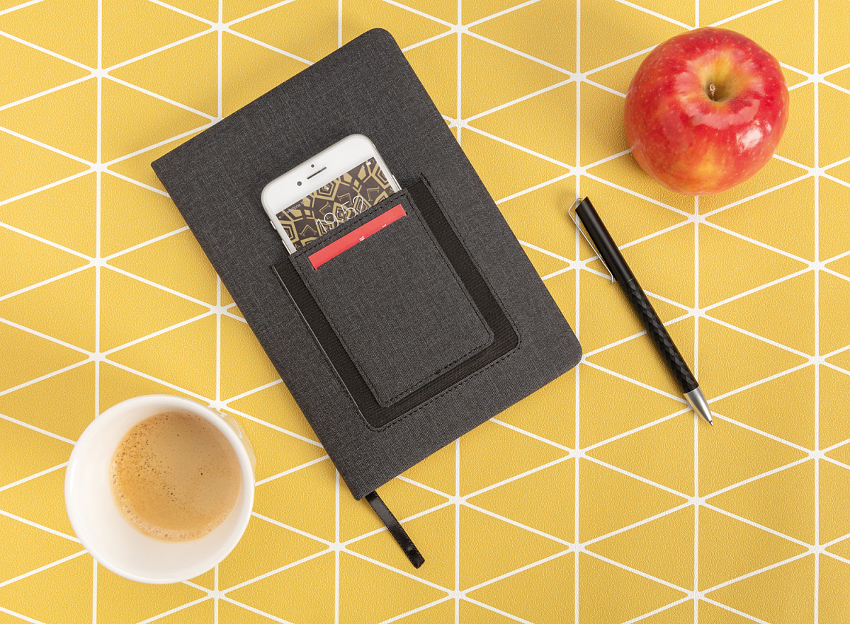 Блокнот Deluxe с кармашком для телефона можно заказать в нашей компании по самой доступной цене от 912 рублей.