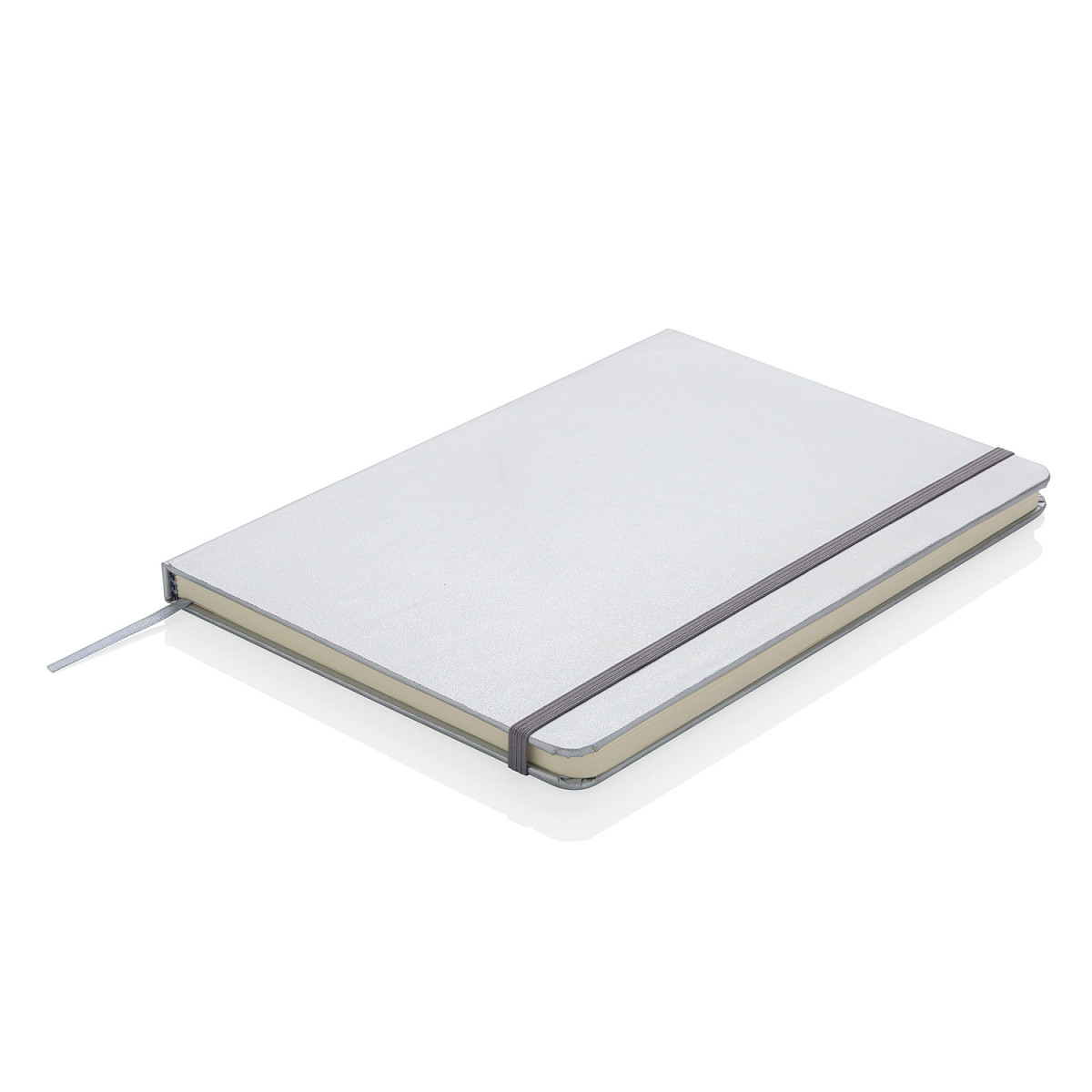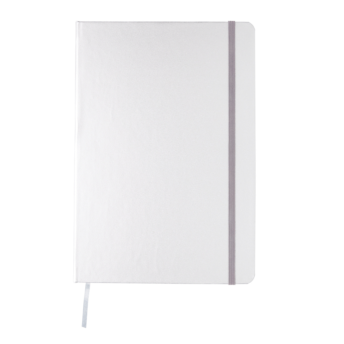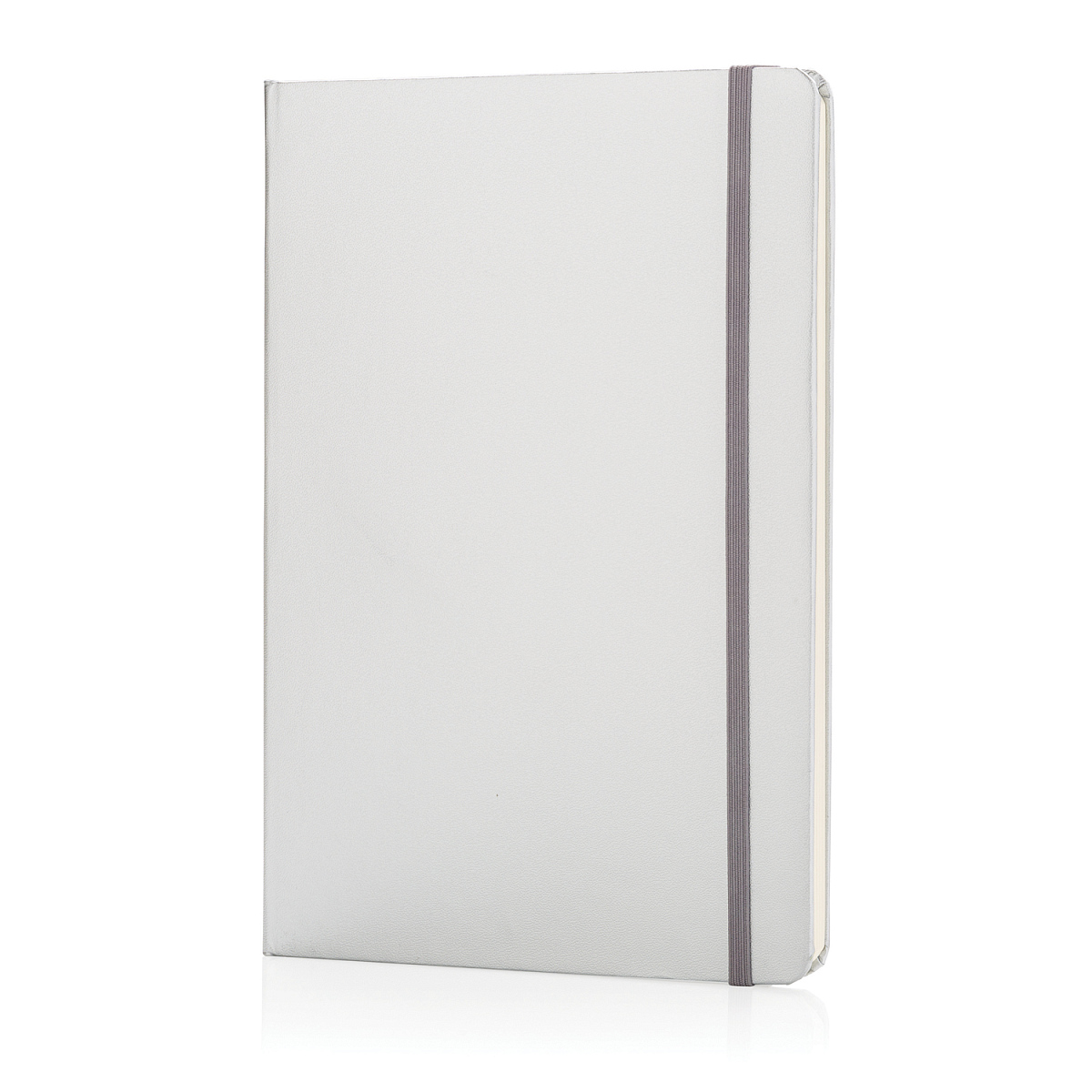 Блокнот для записей Basic в твердой обложке формата А5 на резинке с ляссе. 72 страницы, линованная бумага кремового цвета, плотностью 70 г/м2. Длина 1,3 см., ширина 14,5 см., высота 21 см., диаметр 0 см.