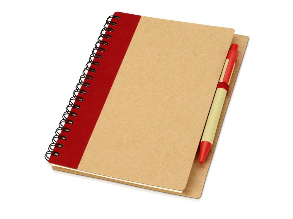 Блокнот с 60 листами переработанной бумаги 70 г/м2 и картонной ручкой в цвет блокнота.