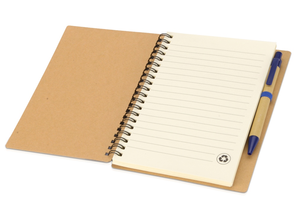 Блокнот с 60 листами переработанной бумаги 70 г/м2 и картонной ручкой в цвет блокнота.