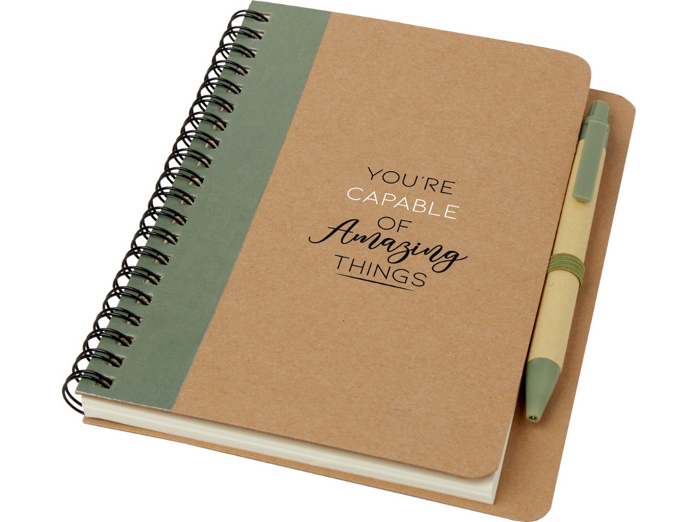 Записная книжка с обложкой из переработанной бумаги. 60 линованных листов, переработанная бумага формата А6, ручка в комплекте. Переработанная бумага.