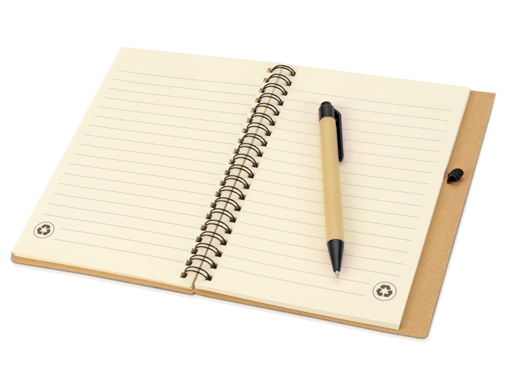 Блокнот Priestly с ручкой. Блокнот формата с 60 листами линованной бумаги вторичной переработки и ручкой под цвет блокнота. На обложку блокнота и ручку можно нанести яркий логотип.
