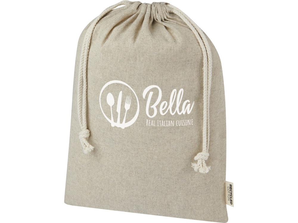 Подарочная сумка из хлопка, переработанного по стандарту GRS, с хлопковым шнурком для затягивания. Идеально подходит для подарков или хранения предметов. Размер: 30 x 42 см.