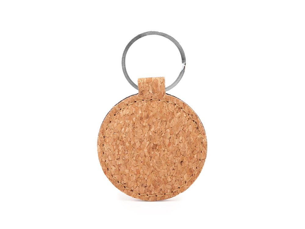 Классический брелок из натуральной пробки с металлическим кольцом.
