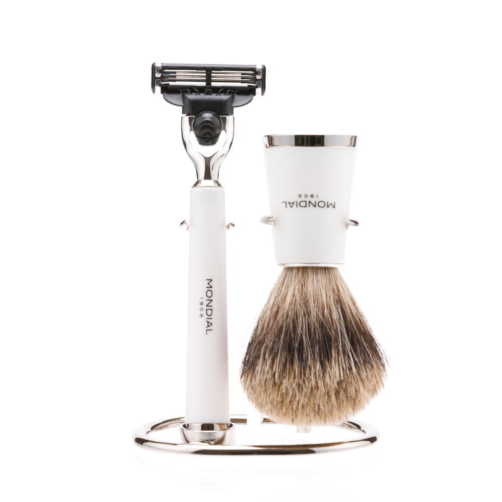 Бритвенный набор Mondial: станок, помазок, подставка; белая смола можно заказать в нашей компании по самой доступной цене от 25 780 рублей.