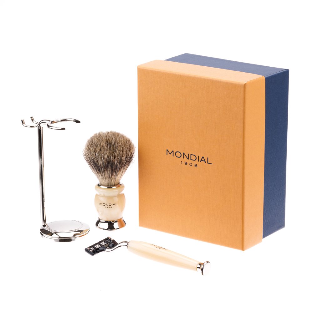Бритвенный набор Mondial: станок, помазок, подставка; цвет слоновая кость можно заказать в нашей компании по самой доступной цене от 28 600 рублей.