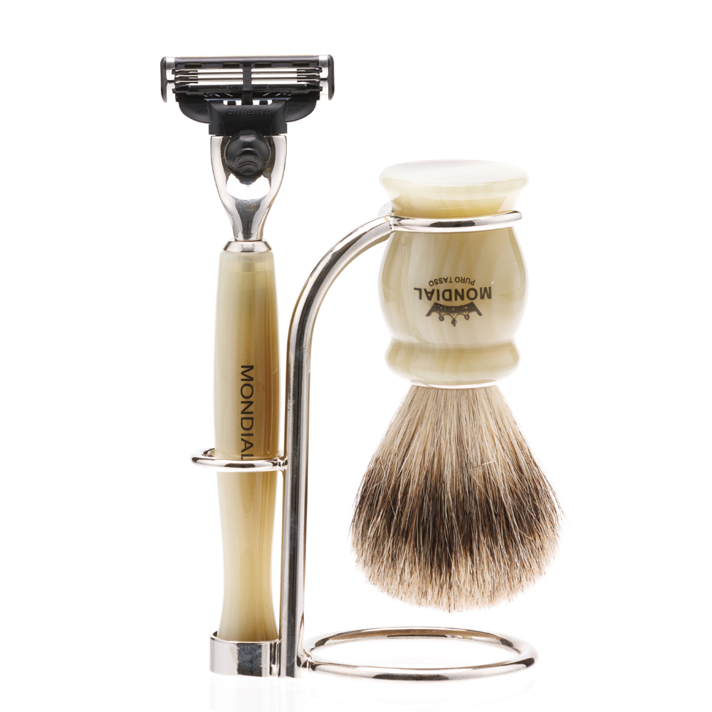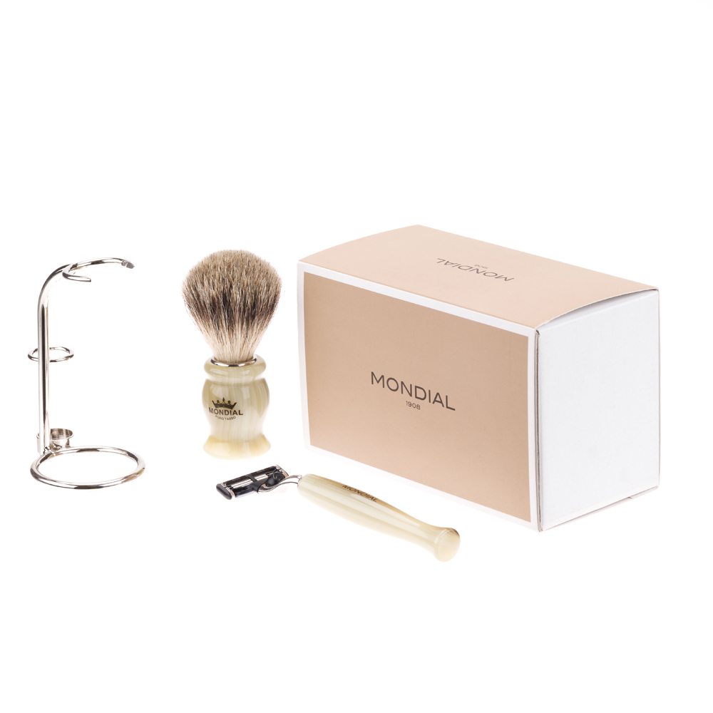 Бритвенный набор Mondial: станок, помазок, подставка; светлый и серый перламутр можно заказать в нашей компании по самой доступной цене от 20 120 рублей.