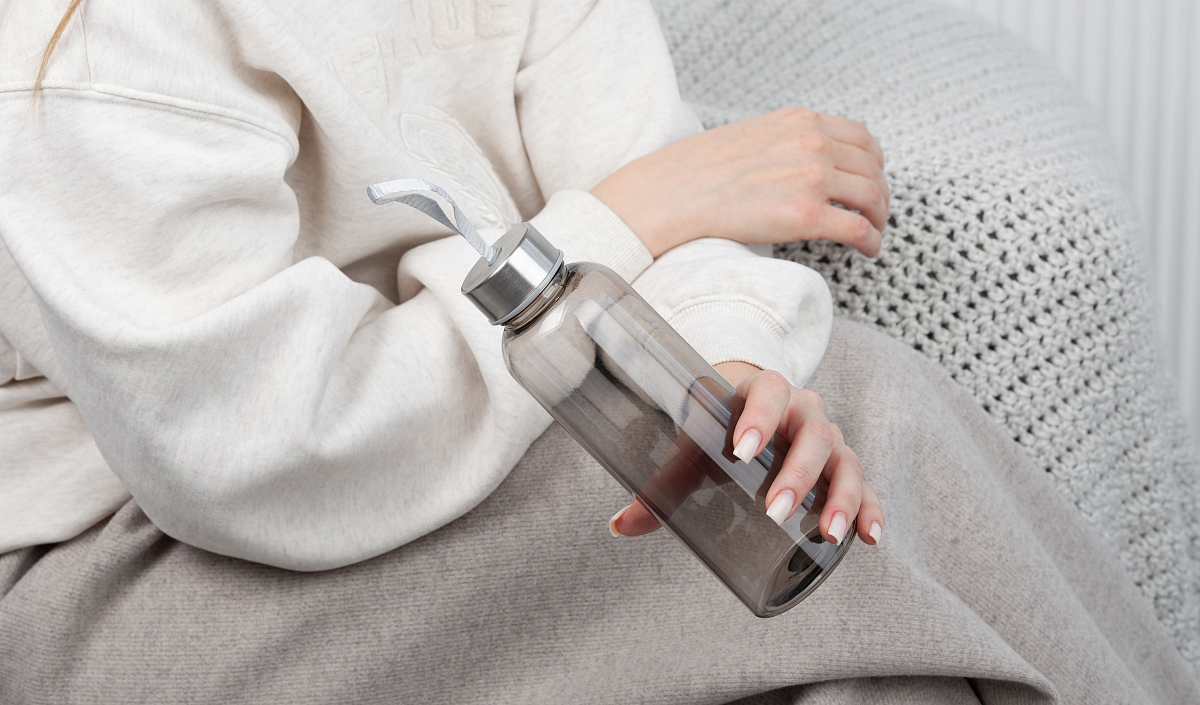 Бутылка для воды «H2O» — это удобный и полезный презент для любого человека. Она позволяет всегда иметь при себе запас (500 мл) чистой питьевой воды. Бутылка изготовлена из экологически чистого пластика и оснащена завинчивающейся металлической крышкой. Текстильная ручка на крышке дает возможность максимально удобно переносить емкость в руках. Благодаря стандартному размеру, бутылка хорошо помещается в сумку и рюкзак.