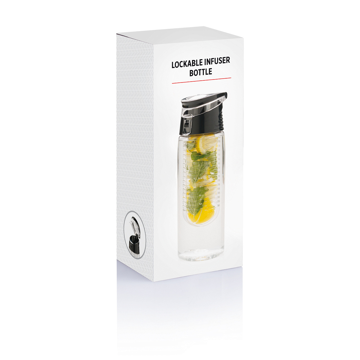 Стильная бутылка для воды Lockable с контейнером отлично подходит для приготовления фруктовых или травяных напитков. Корпус изготовлен из износостойкого и экологичного материала Tritan, а крышка выполнена из ABS-пластика. Защита от проливания. Объем - 700 мл. , высота 23 см., диаметр 7,5 см.
