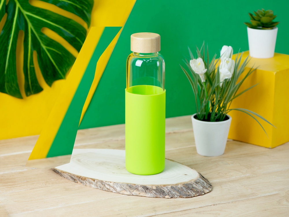 Стильная бутылка для воды сразу привлечет внимание к себе, где бы Вы ее ни достали, так как представляет собой идеальную композицию из трех экологичных материалов. Бутылка выполнена из качественного боросиликатного стекла, поэтому абсолютно не влияет на вкус и запах напитков. Силиконовый чехол поможет защитить бутылку от повреждений и легких падений, также чехол выполняет анти-скользящую функцию. Крышка выполнена из натурального бамбука. Не замораживайте и не используйте бутылку в микроволновке. Бутылка легко моется. Объем 550мл.