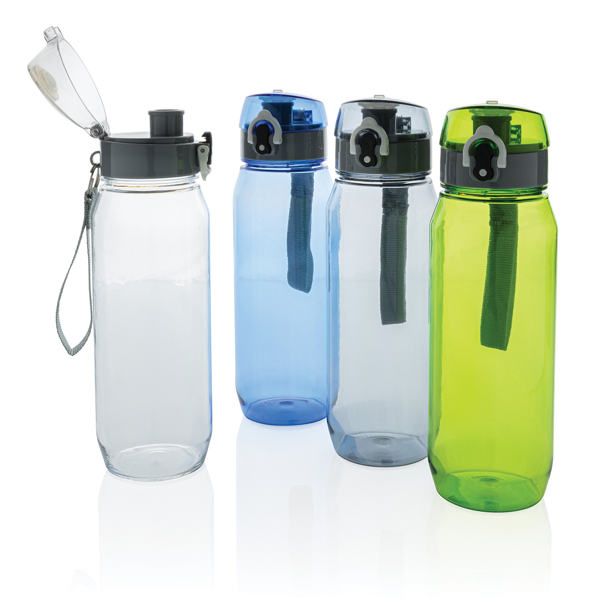 Бутылка для воды Tritan объемом 800 мл. Прозрачная бутылка из экологичного материала, который не впитывает запахи и не содержит бисфенол. У бутылки удобная крышка, которая открывается нажатием на кнопку, есть фиксатор, который не позволит бутылке случайно открыться во время движения. В комплект входит ремешок для запястья. Длина 8 см., ширина 8 см., высота 24,8 см., диаметр 7,8 см.