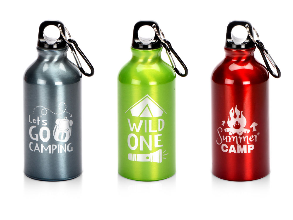 Бутылка для питья Oregon с карабином. Бутылка с одинарными стенками со съемной крышкой. Карабин не предназначен для лазанья. Объем – 400 мл. BPA Free Алюминий.