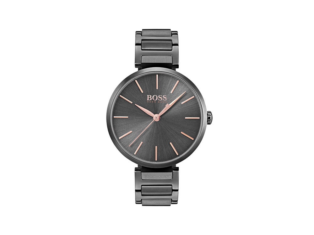 Кварцевый 3-х стрелочный механизм, D=36 мм, толщина корпуса 10 мм, корпус и браслет из нержавеющей стали (316L) и серым IP покрытием, серый Sunray циферблат с индексами розовое золото, водозащита 30 м.