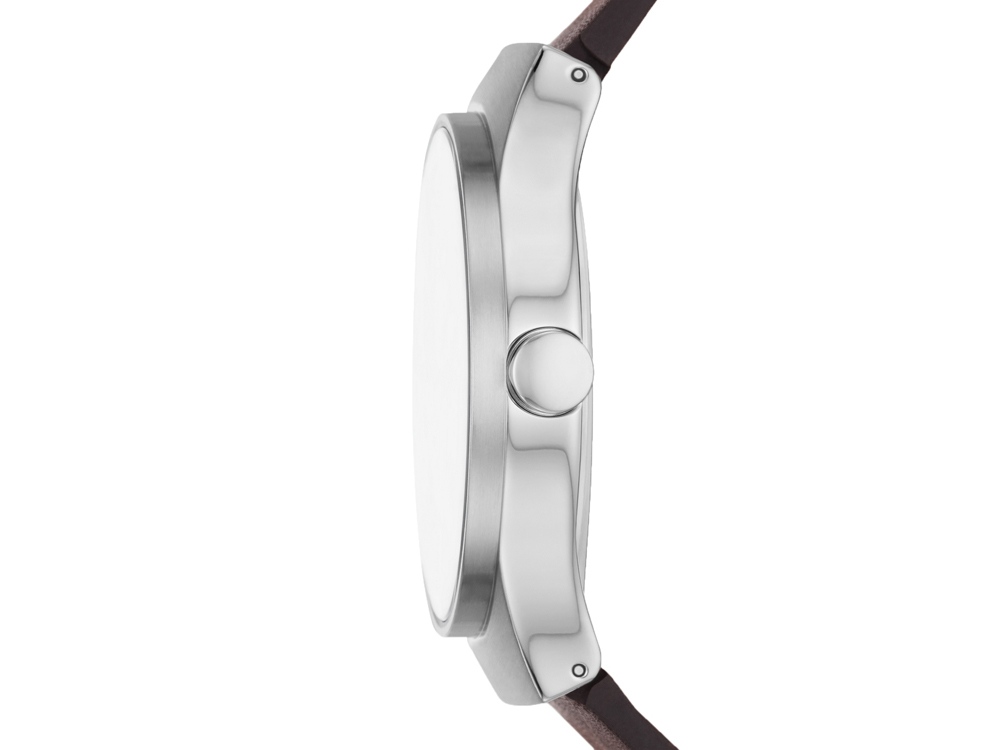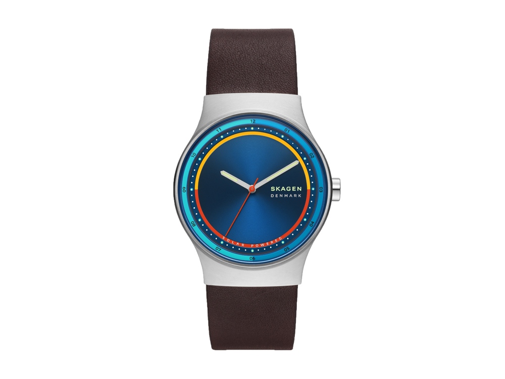 Товар представлен в следующем цвете: Корпус- стальной, циферблат- синий, крепление- коричневый