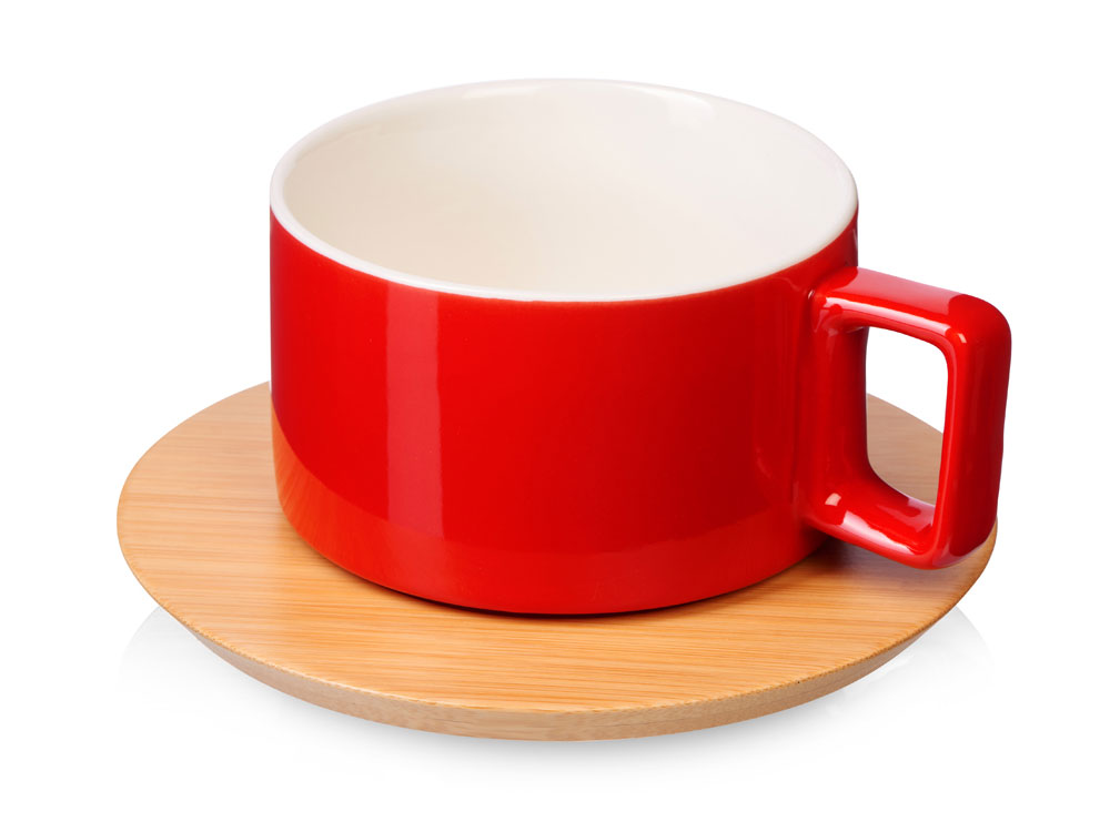 Широкая и устойчивая кружка с удобной ручкой на бамбуковом блюдце — стильно, необычно и практично. Поверхность стола надёжно защищена от повреждений и пятен.