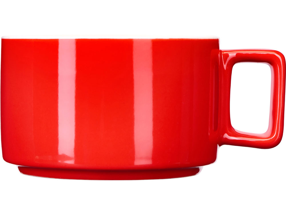 Кружка выполнена из костяного фарфора, отличающегося повышенной прочностью.