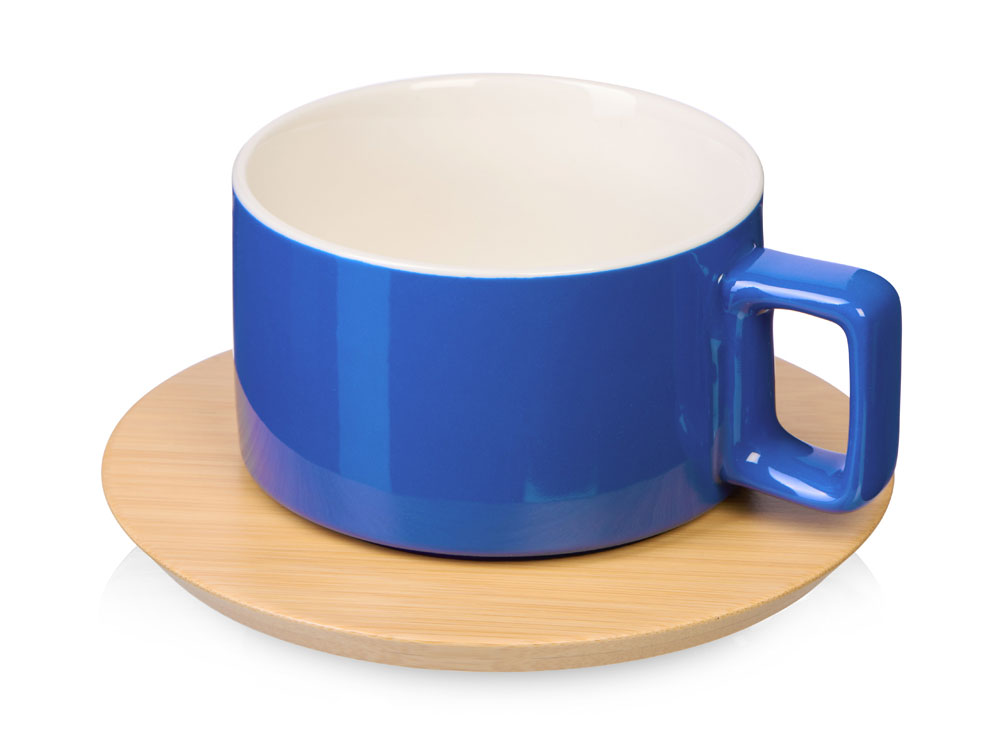 Широкая и устойчивая кружка с удобной ручкой на бамбуковом блюдце — стильно, необычно и практично. Поверхность стола надёжно защищена от повреждений и пятен.