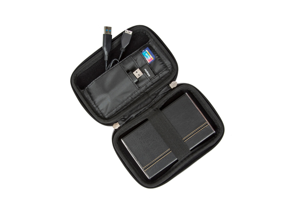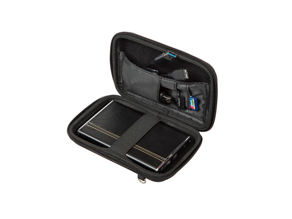 • Устройство надежно крепится внутри чехла специальной фиксирующей лентой, кроме того предусмотрены дополнительные внутренние карманы для кабеля, карт памяти и аксессуаров.