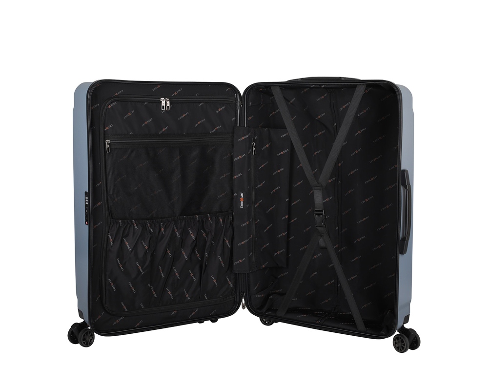 Чемодан на колесах Eberhart Craft L надежно оберегает багаж: для этого производитель установил кодовый TSA-замок. Сотрудники таможни смогут досмотреть чемодан для багажа без деформации и повреждения чемодана. Дополнительную защиту вещам обеспечивают прижимные ремни, расположенные внутри чемодана.