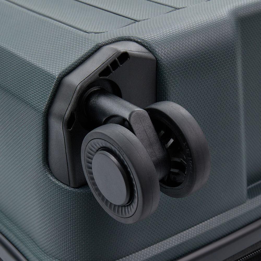 - Блок крепления колеса встроен в корпус чемодана, что обеспечивает лучшую устойчивость к внешнему воздействию