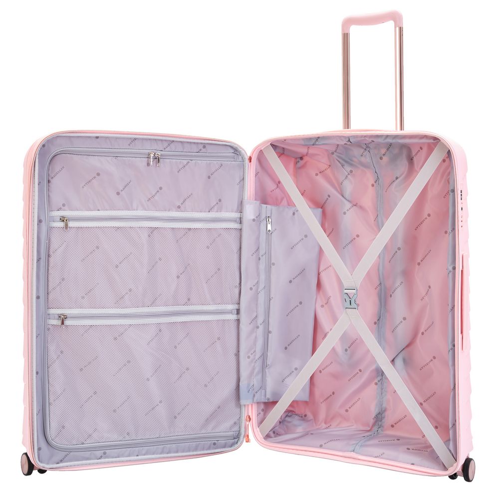 Чемодан из женственной коллекции Victoria имеет стильную обтекаемую форму и узор с плавными волнами, которые выделяют его среди других. Нежные оттенки придают чемодану элегантный вид, подчеркивая индивидуальность и хороший вкус путешественницы.
