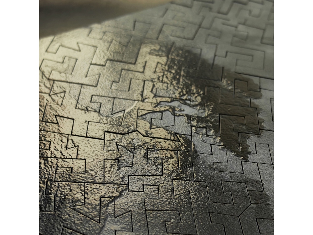 У пазла уникальный — гипнотический — рез. Детали меняются от жестких геометричных, до мягких и извилистых, чтобы в конце концов сойтись к храму в центре картины воронкой, в которой исчезнут все ваши тревоги и заботы.