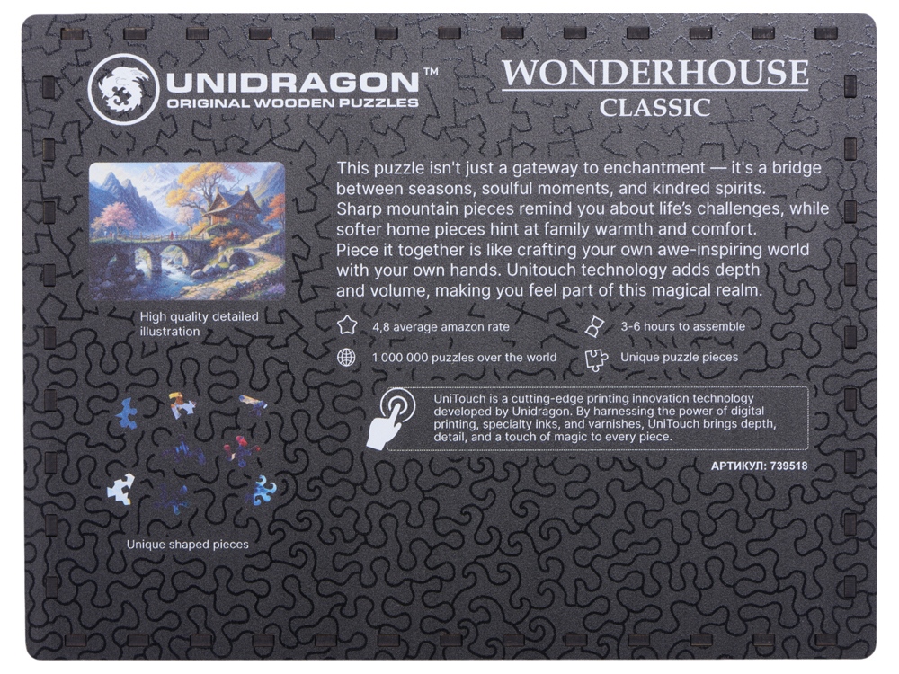Атмосферная черно-белая иллюстрация позволит с головой погрузиться в сборку. А фирменная технология печати Unitouch дарит ей глубину и объем, который оживет под вашими пальцами.