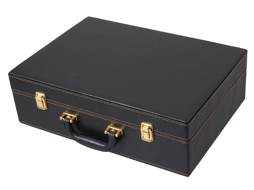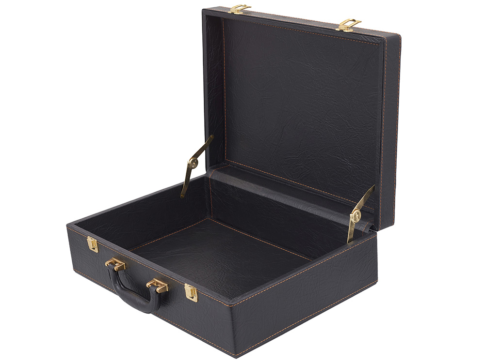 Роскошный кожаный дипломат с двойной защитой – два замочка надежно сохранят содержимое. Вместительный внутренний объем подойдет для дорогих презентов, а изящная строчка подчеркнет статус подарка.