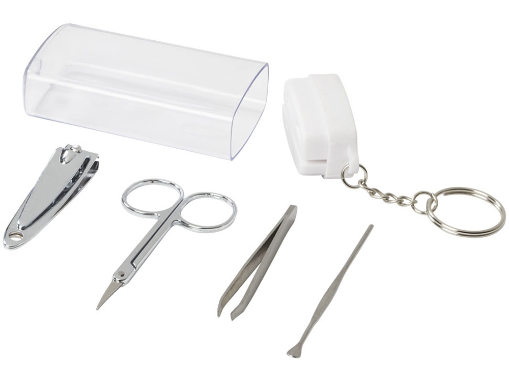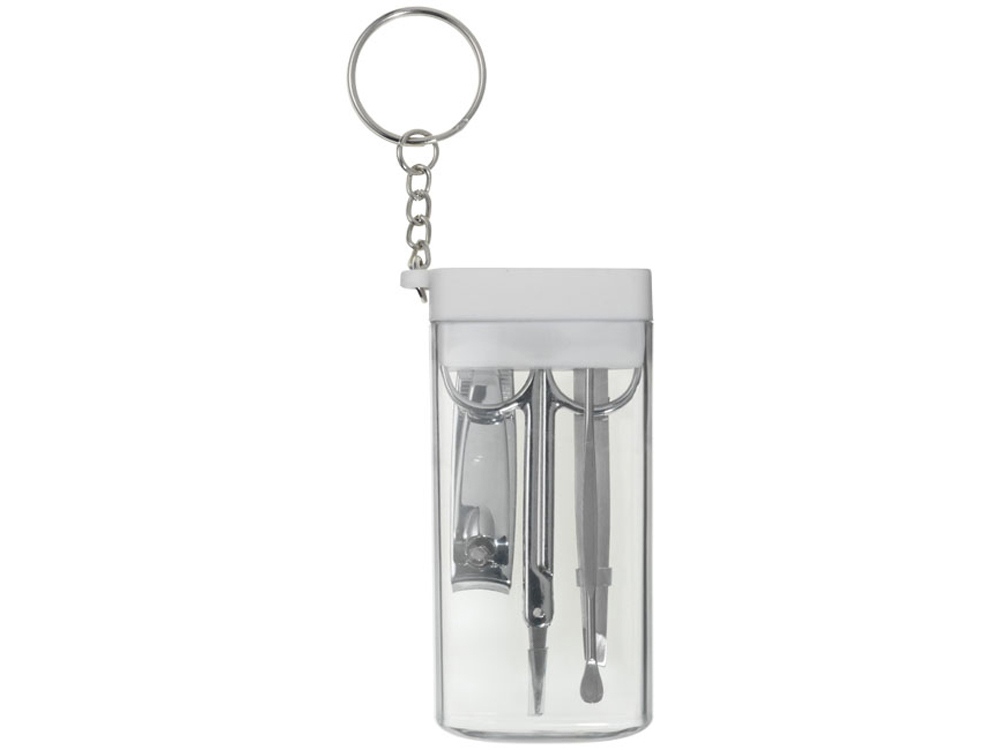 Дорожный маникюрный набор Seki. Трендовый маникюрный набор с колечком для брелока - вы сможете всегда брать его с собой. В наборе кусачки, пинцет, закругленные ножницы и инструмент для кутикулы. Пластиковый чехол.