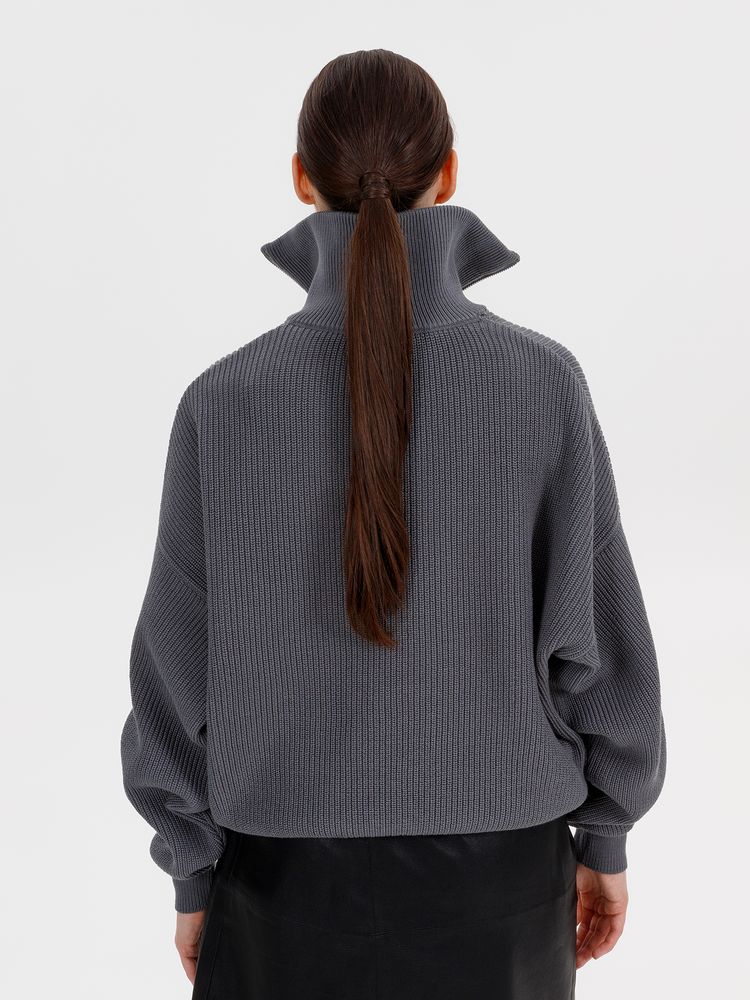Siluetti Birne — плотный джемпер фактурной вязки со спущенной линией плеча позволит добавить в силуэт мягких линий и ненавязчивого объема, а также создать современный модный образ в лаконичном актуальном стиле, отдав при этом дань беспроигрышной классике. Дополнительным акцентом служит высокая горловина на молнии, а широкая резинка на рукавах и по нижнему краю изделия гарантирует максимальный комфорт.