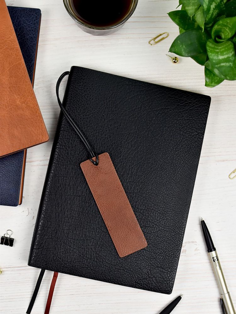 Ежедневник с гибкой обложкой и закладкой из искусственной кожи, дополнен капталом и двойным ляссе.