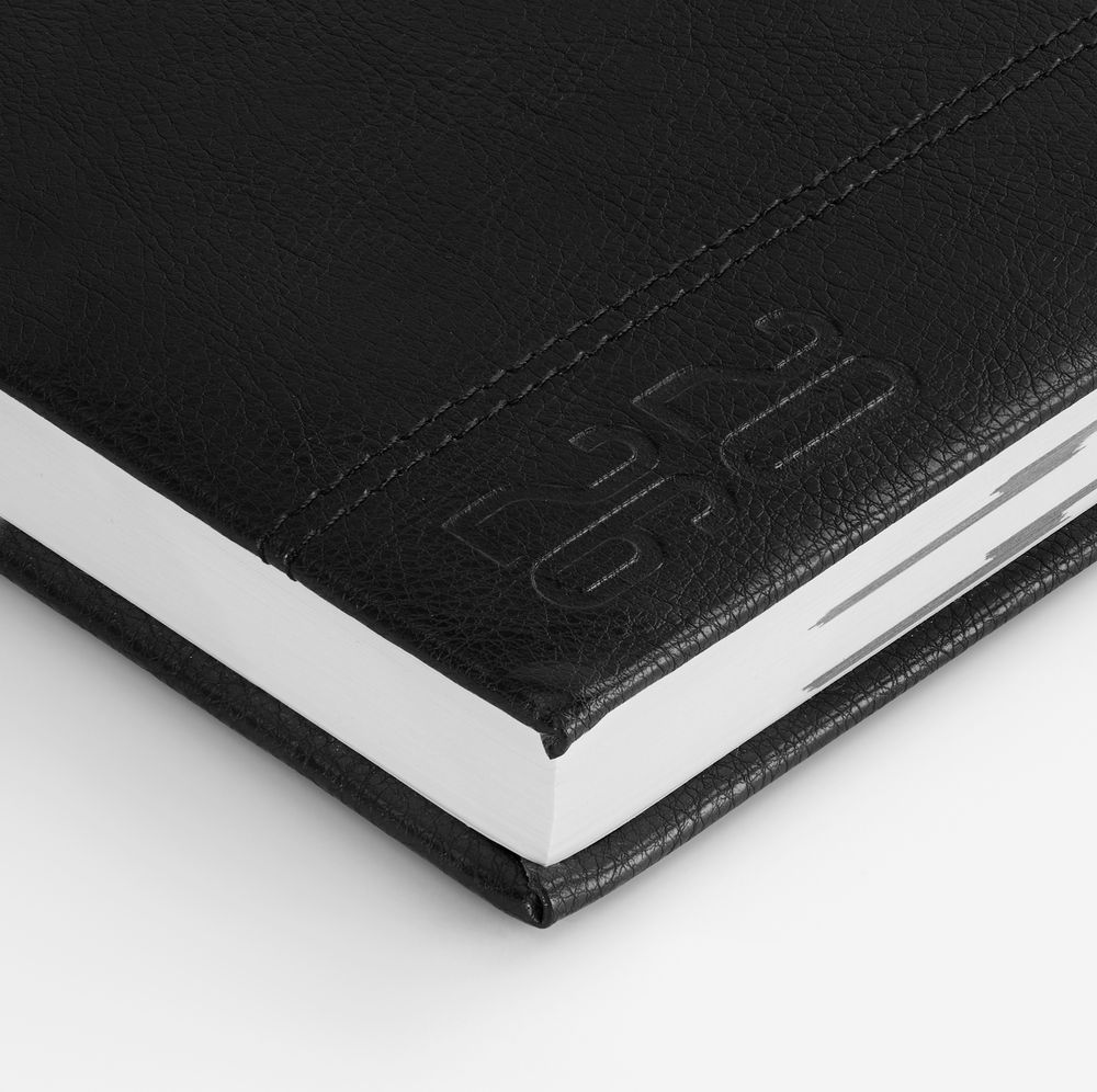 Ежедневник с твердой обложкой с поролоном из искусственной кожи, дополнен декоративной строчкой, капталом и ляссе в цвет ежедневника.
