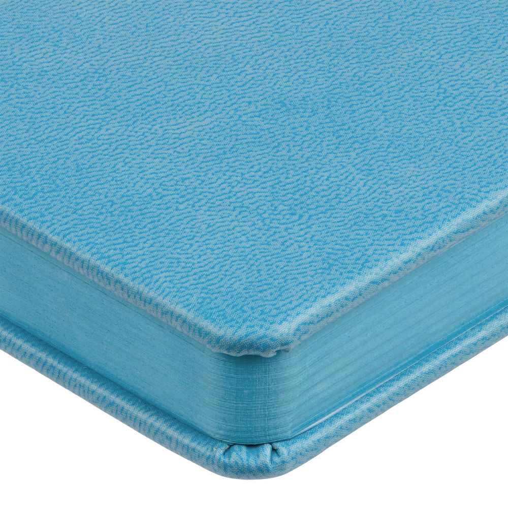Ежедневник с твердой обложкой и тонированным обрезом. Выполнен из материала Latte, бирюзовый, дополнен ляссе в цвет обложки.