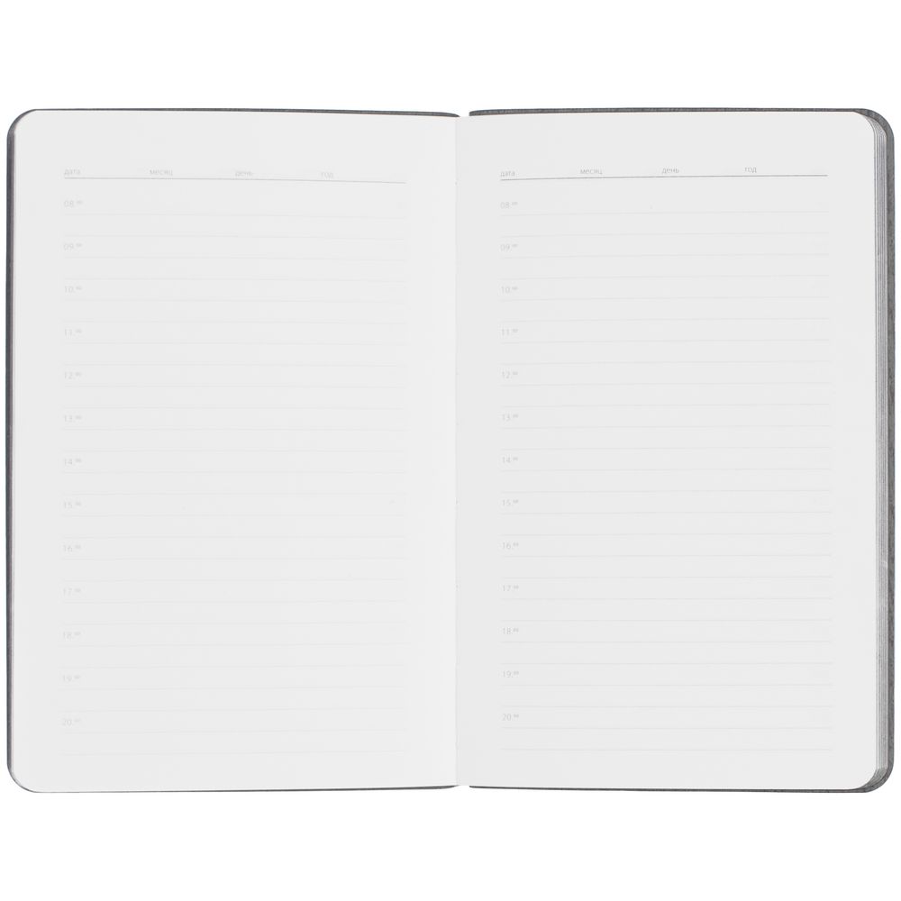 Ежедневник с гибкой обложкой выполнен из материала Soft Touch, белый BB и серого Latte (внутренняя часть обложки).