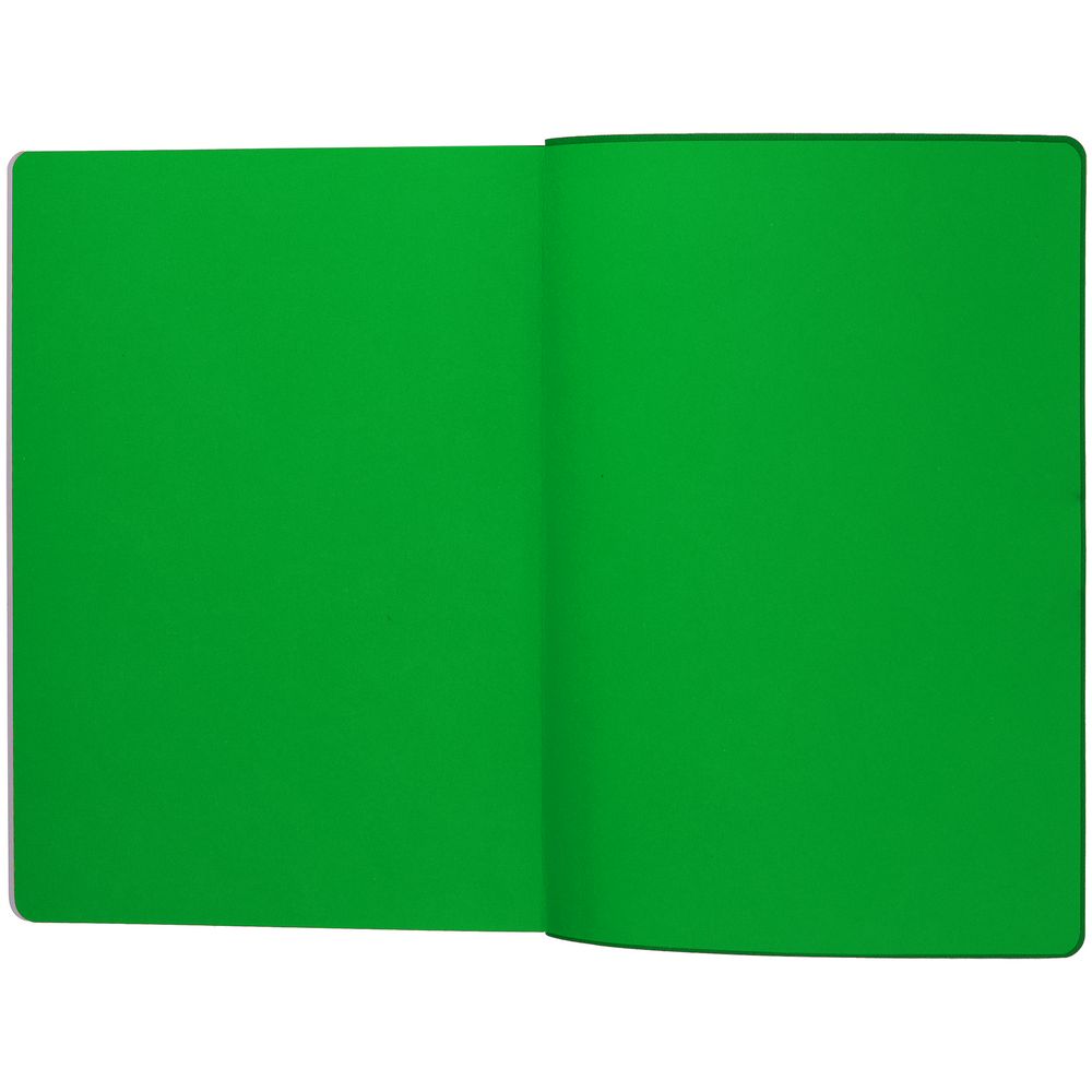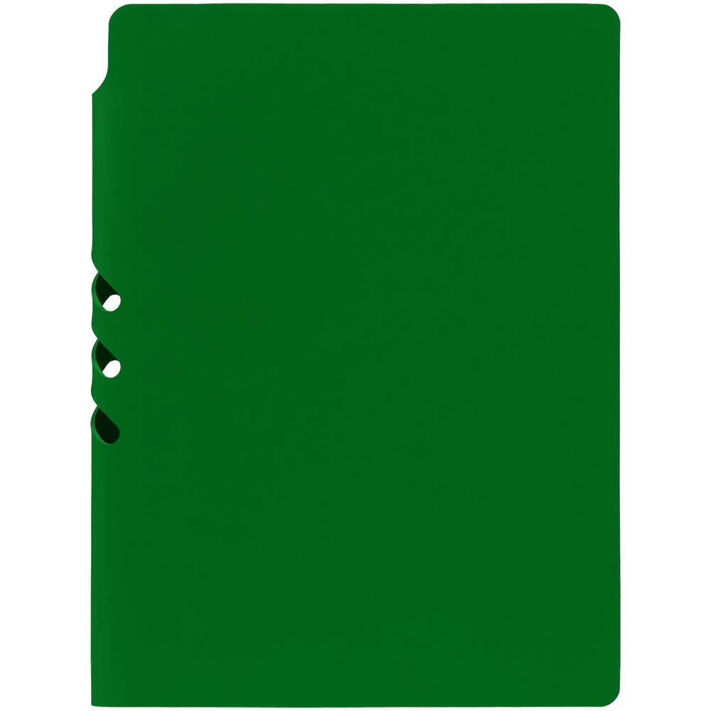 Гибкая обложка выполнена из материала Soft Touch Ultra, зеленый FF и Latte, зеленый FF (внутренняя часть обложки). Внутри корешка — специальное место для крепления ручки размером до 15х1 см.