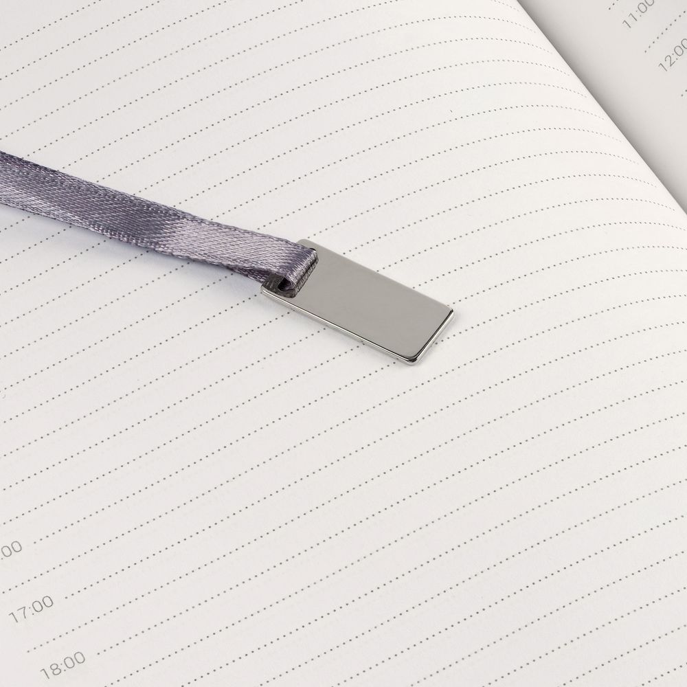 Ежедневник в гибкой суперобложке c карманом на молнии, выполнен из материала Nubuck, серый СС. Дополнен капталом и металлической шильдой на ляссе серого цвета.