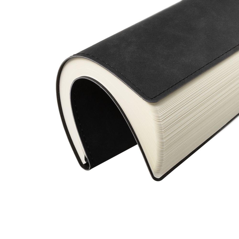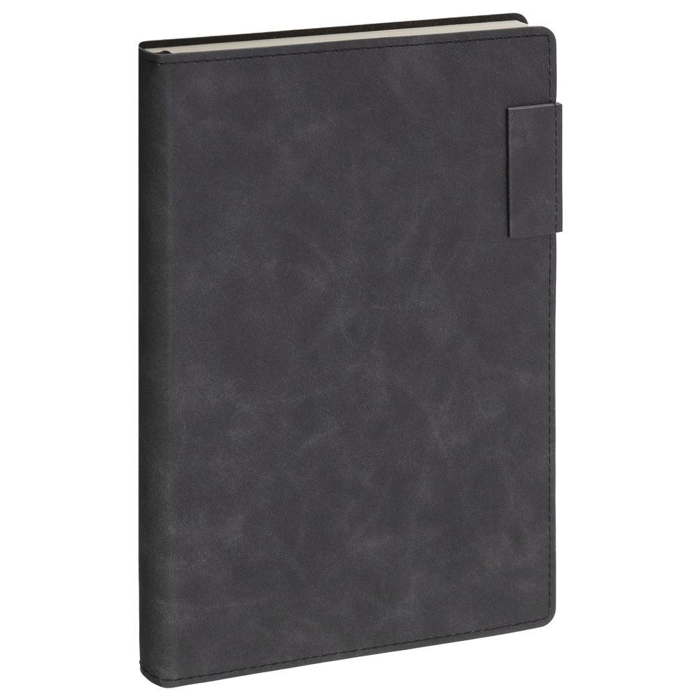 Ежедневник 17х24 см, с гибкой обложкой, выполнен из материала Nubuck Touch, темно-серый ЕЕ, дополнен петлей-лейблом для ручки и двойным ляссе в цвет материала.