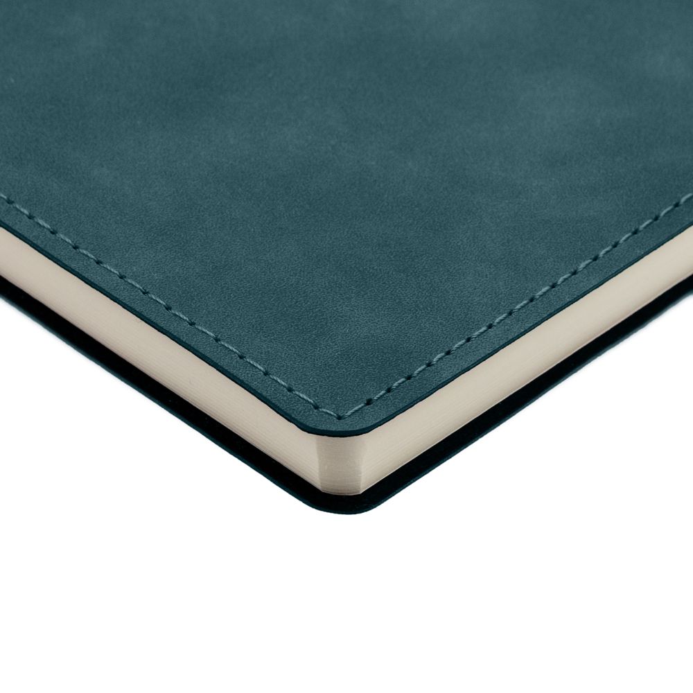 Ежедневник 17х24 см, с гибкой обложкой, выполнен из материала Nubuck Touch, темно-серый ЕЕ, дополнен петлей-лейблом для ручки и двойным ляссе в цвет материала.