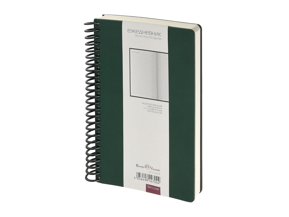 Недатированный деловой ежедневник Agenda формата A5 – практичное решение для любителей ежедневника на пружине. Открытый гребень позволяет переворачивать страницы на 360 градусов, держать его открытым на столе, комфортно вести записи. Обложка из искусственной кожи гибкая (flex). Внутренний блок ежедневника изготовлен из высококачественной бежевой бумаги, обладающей плотностью 80 грамм.