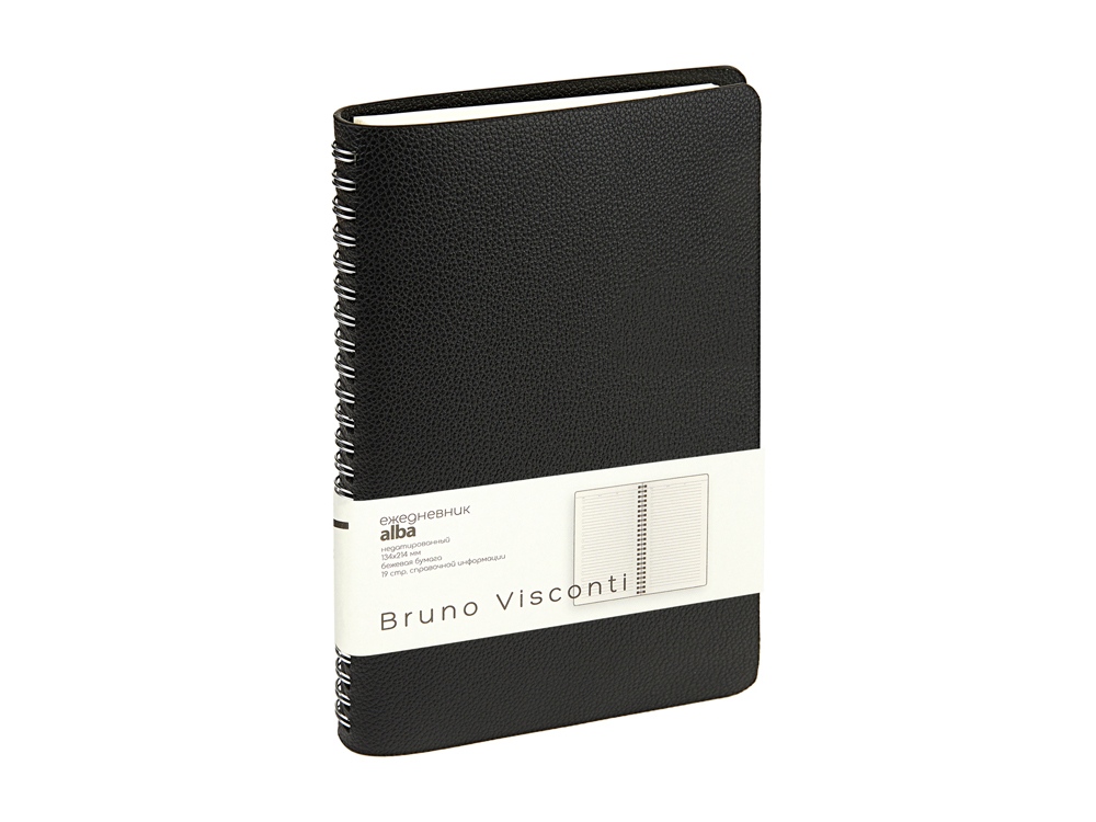 Недатированный ежедневник Alba ТМ Bruno Visconti формата А5 сочетает в себе два тренда, набирающих популярность среди современных деловых людей: полускрытый гребень, позволяющий переворачивать листы на 360 градусов, и мягкая гибкая обложка из искусственной кожи высокого качества исполнения.