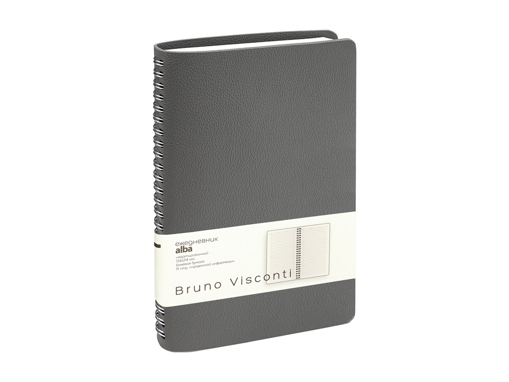 Недатированный ежедневник Alba ТМ Bruno Visconti формата А5 сочетает в себе два тренда, набирающих популярность среди современных деловых людей: полускрытый гребень, позволяющий переворачивать листы на 360 градусов, и мягкая гибкая обложка из искусственной кожи высокого качества исполнения.