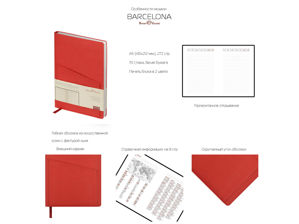Ежедневник недатированный А5 Barcelona можно заказать в нашей компании по самой доступной цене от 356.84 рублей.