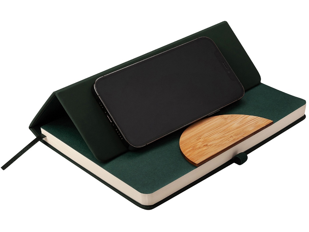 Обложка, выполненная из экокожи с покрытием Soft Touch, создает приятные тактильные ощущения при соприкосновении с ежедневником. Украшает обложку деревянный элемент и вырубка в форме полукруга. Ну, а вишенка на торте – мягкая линия сгиба в центре обложки, позволяющая использовать ежедневник в качестве подставки под телефон. А маленькая петля из резинки – отличное решение для фиксации шариковой ручки, она всегда будет под рукой. Есть еще одна удобная деталь ежедневника - ляссе в цвет обложки для быстрой навигации.